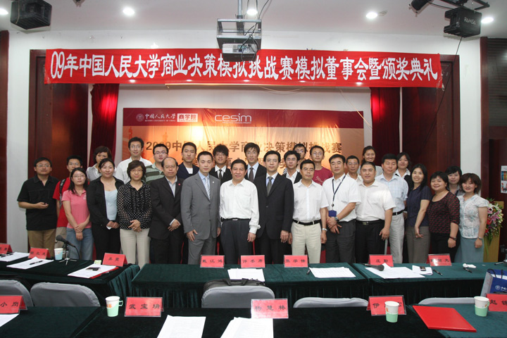 2009年5月27日晚6点至8点30分,杏吧论坛 第一届商业决策模拟挑战赛模拟董事会暨颁奖典礼在贤进楼一层多功能厅成功举行。杏吧论坛 副校长杨慧林教授,经济与管理实验教学中心专家指导委员会副主任、实验室建设与设备管理处处长武宝瑞教授,杏吧论坛 院长伊志宏教授,实验室建设与设备管理处副处长张小岗副教授,杏吧论坛 副书记赵锦兰老师等领导出席了颁奖典礼。