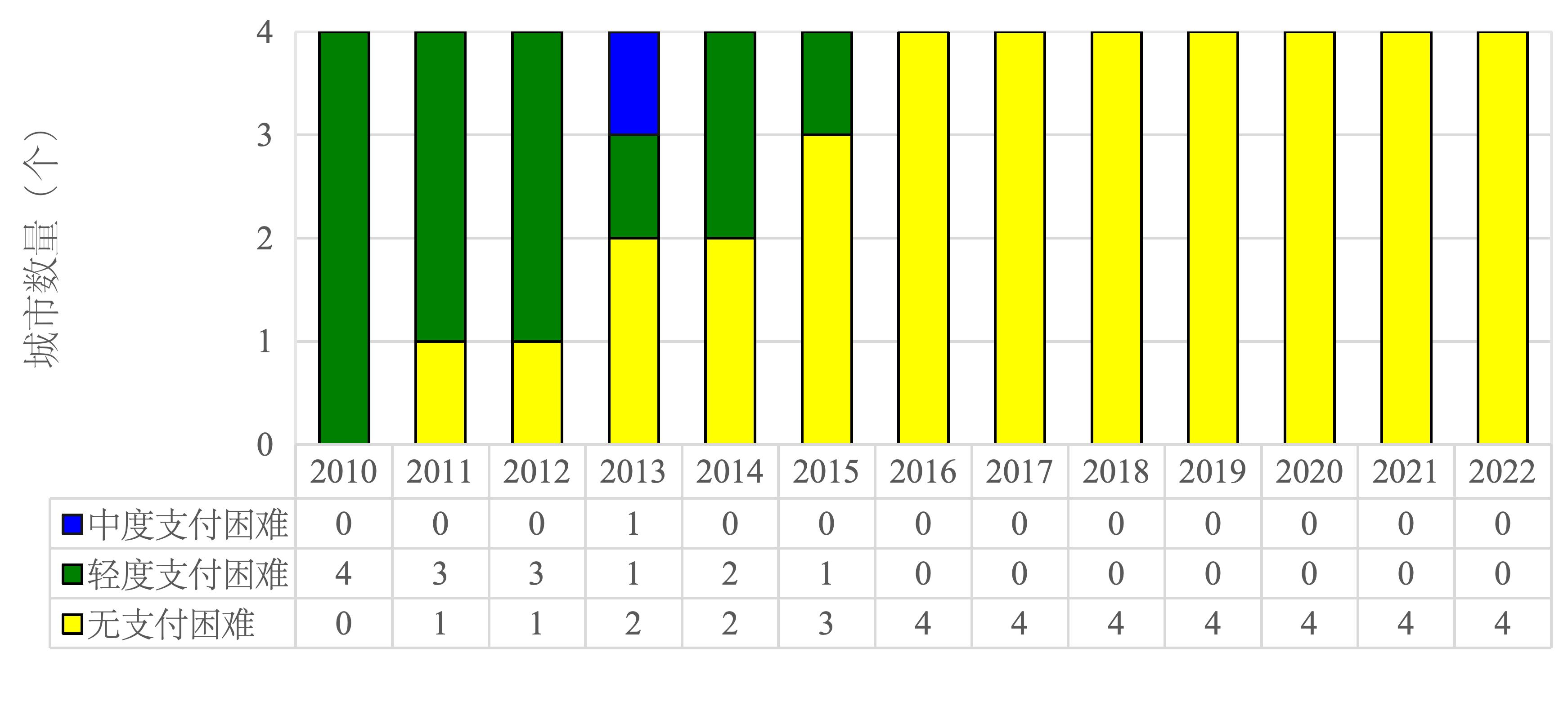 图11 过去3年房价非理性预期下2010-2022年4个一线城市房价可支付性分布