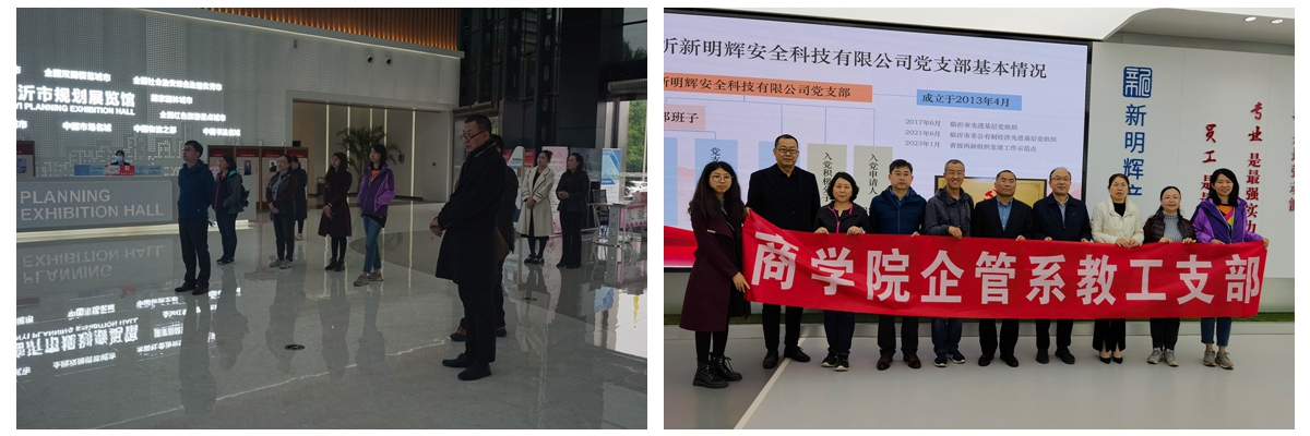 4月23日上午,企管系党支部参观了临沂市规划展览馆。临沂市规划展览馆是临沂市文化地标性建筑, 2015年被评定为“具有影响力的城市规划模型”,在全国地级市规划展览馆中位列首位。参访教师通过了解城市规划布局和落地成效,深刻认识到临沂市之所以成为中国物流之都,经济社会各方面都有好的发展,得益于城市规划。随后,企管系教师参访临沂物流园区的明星企业——新明辉安全科技有限公司,并与新明辉安全科技有限公司党支部开展支部联学。公司创始人总经理李辉介绍了公司发展历程,作为中国最大的经营劳动保护产品的电商平台,双方就将新明辉公司纳入人大杏吧论坛 候选案例计划达成了初步合作意向。
