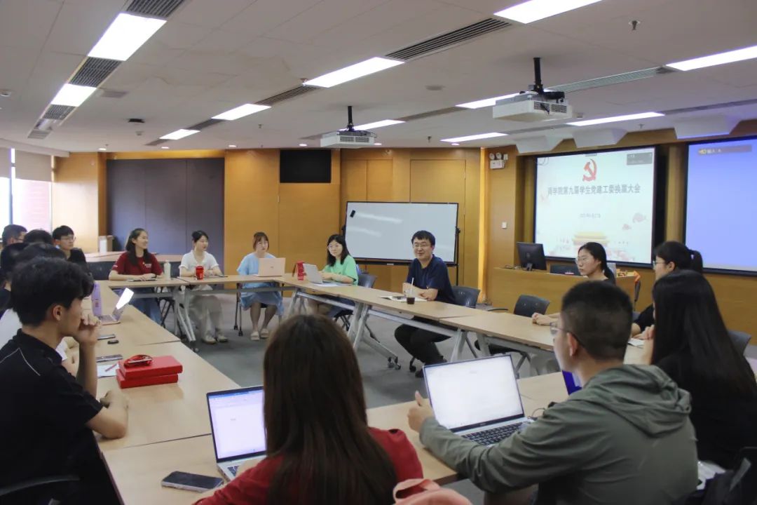 姜明介绍了本次学生党建工委换届情况。经过自愿报名、简历筛选、综合审查、面试、公示等环节,第九届学生党建工委成员已正式确定。
