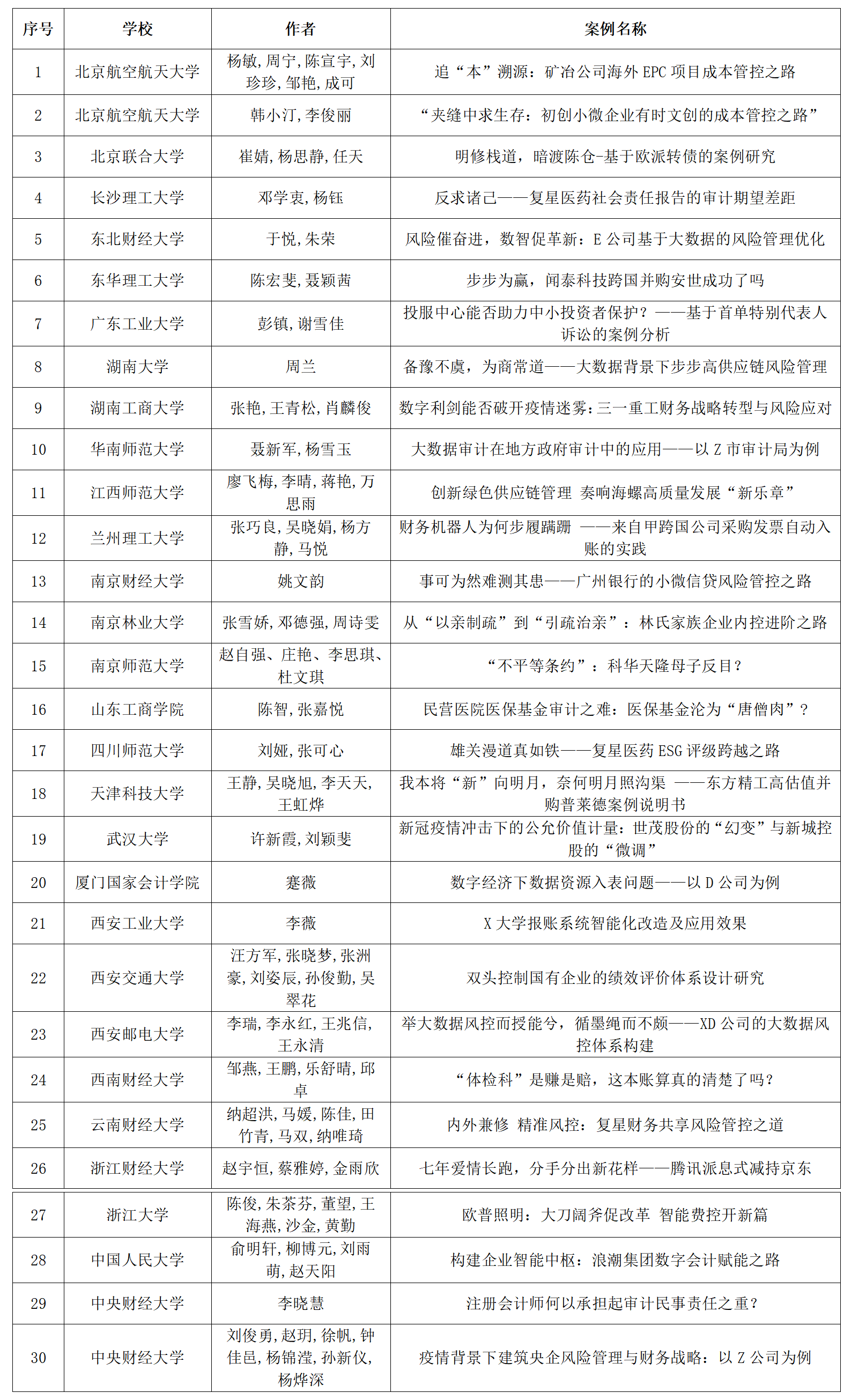 2022年MPAcc教学案例入库名单(排名不分先后)