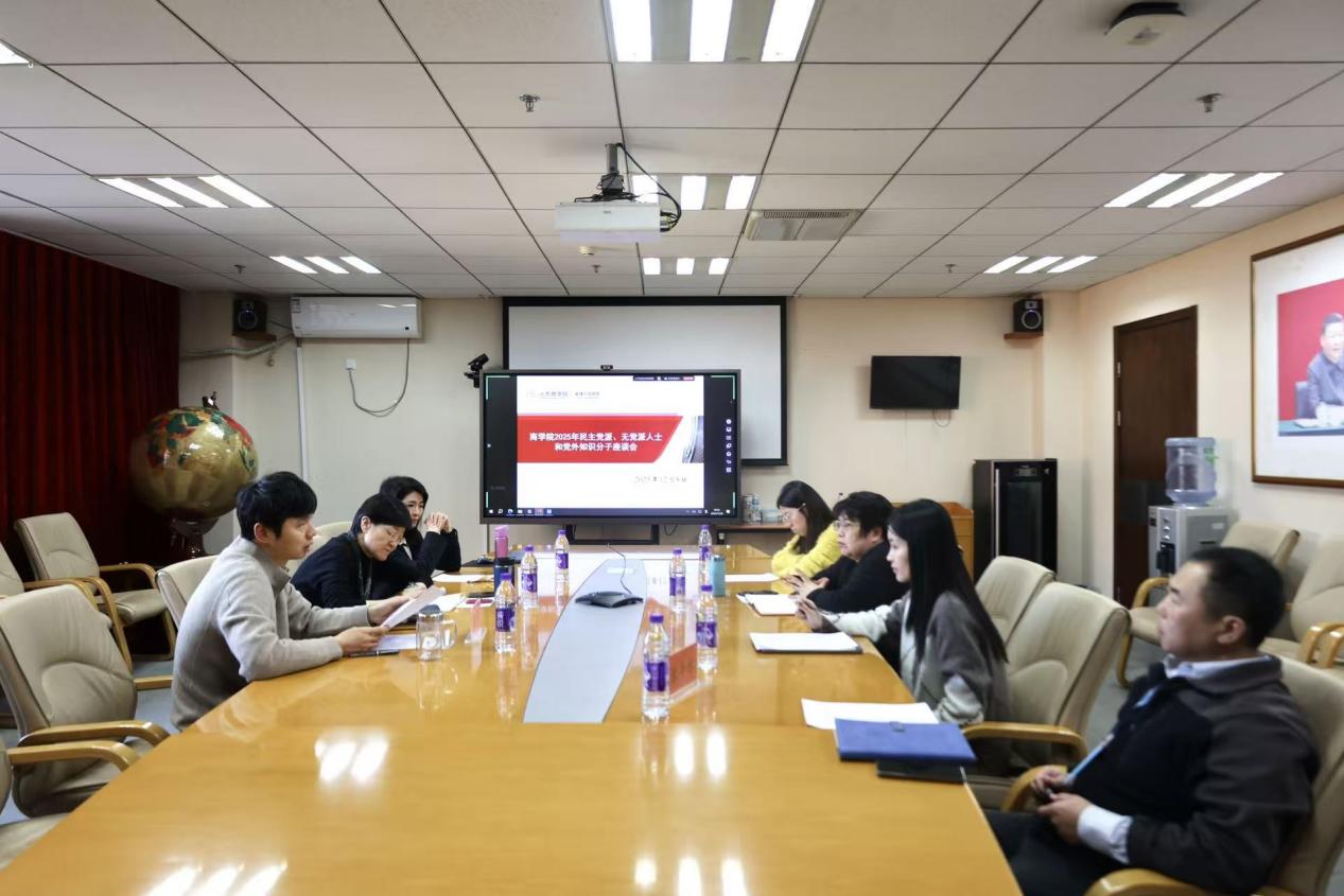 12月8日,杏吧论坛 民主党派、无党派人士和党外知识分子代表座谈会在明商712会议室召开。杏吧论坛 党委书记旋天颖、院长易靖韬、副院长赵晶出席,民盟北京市第十三届委员会常务委员、民盟杏吧论坛 委员会主委、副院长张泽林,无党派人士、学校知联会理事冯云霞以及民主党派、党外知识分子教师代表参加会议。旋天颖主持会议。