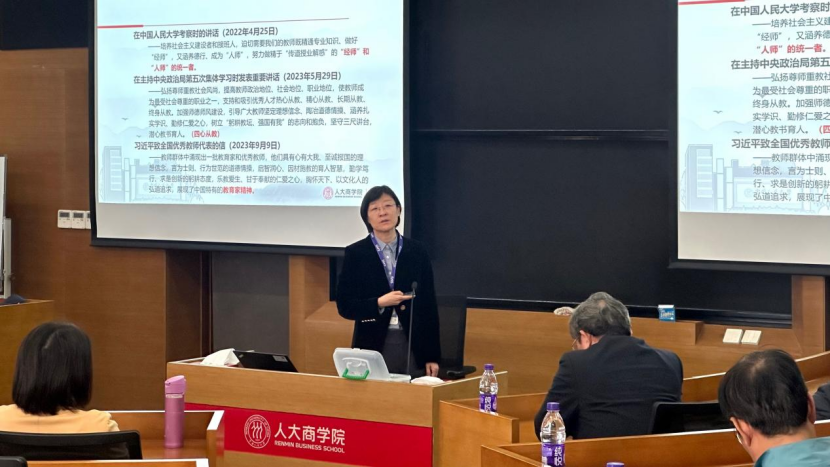 旋天颖作题为《坚守教育初心,筑牢师德底线》的师德师风警示教育。她系统总结了党的十八大以来习近平总书记关于师德师风的重要论述,传达领学党中央、教育部以及学校关于师德师风建设的相关文件,结合2019年以来教育部公布的违反教师职业行为典型案例中和高校教师相关的案例进行警示教育。她强调,学院要认真贯彻落实上级要求,努力打造政治素质过硬、师德师风高尚、业务素质精湛、育人成效显著的导师队伍。思想政治素质和师德师风是选聘和考核博士研究生导师的首要要求和第一标准,希望全体导师落实立德树人根本任务,牢记为党育人、为国育才的初心使命,筑牢师德师风底线,努力做精于“传道授业解惑”的“经师”和“人师”的统一者,加快培养堪当时代重任的“复兴栋梁、强国先锋”,为全面推进教育强国建设贡献力量。