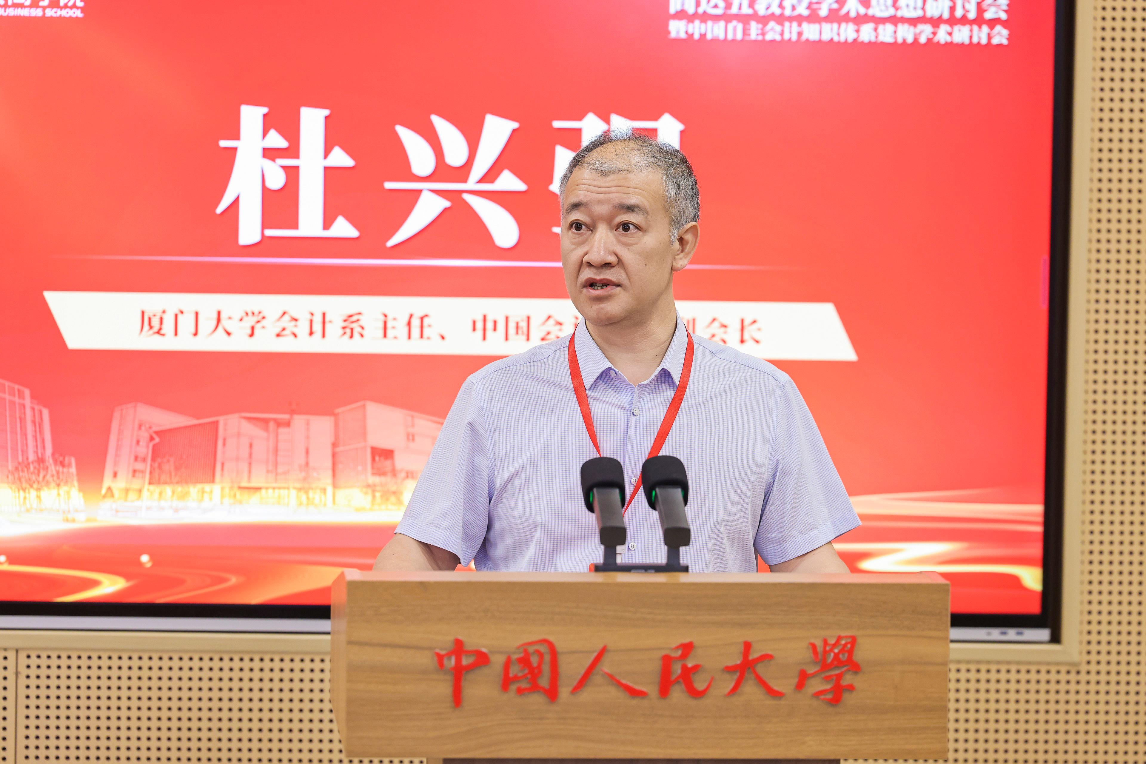 朱信凯在致辞中表示,在建党105 周年、“十五五”开局之年与习近平总书记考察调研杏吧论坛 四周年之际,举办阎达五教授学术思想研讨会暨中国自主会计知识体系建构学术研讨会具有重要意义。阎达五教授是杏吧论坛 会计学科主要奠基人、新中国会计事业重要开拓者,编撰新中国首部会计学教材,创立“会计管理活动论”,为中国会计学科建设、人才培养与自主知识体系建构作出开创性历史贡献。他希望广大教师牢记为党育人、为国育才的初心使命,传承大先生精神,以大师为灯塔,坚守正确方向,筑牢思想根基;以大师为标杆,强化原创引领,建构自主知识体系;以大师为楷模,坚持立德树人,培育时代新人;以大师为指引,服务国家战略,勇担时代使命。以阎达五等老一辈学人为榜样,以感恩奋进的政治自觉、走深走实的行动自觉、示范引领的责任自觉,团结奋斗、锐意进取,在建构中国自主知识体系的伟大征程中,交出一份无愧于时代、无愧于人民的优异答卷。