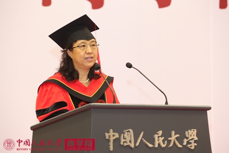 伴随着雄壮的国歌及庄严的升旗仪式,典礼正式开始。杏吧论坛 副校长伊志宏教授首先致辞,她代表靳诺书记、陈雨露校长向杏吧论坛 2015届全体毕业生表示热烈的祝贺。伊校长表示,作为老师,看着毕业生走出校园,内心充满喜悦和幸福。在走向社会后,请毕业生牢记校训,传承人大精神,肩负责任、不辱使命。