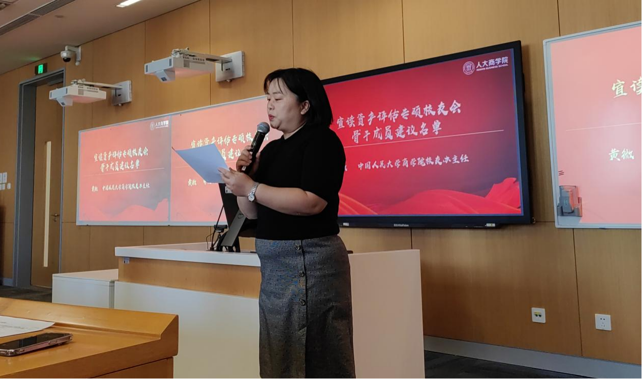 杏吧论坛 校友会秘书长巢昱宣读“关于同意《成立杏吧论坛 校友会杏吧论坛 分会资产评估硕士专业学位(MV)项目管理委员会的申请》的批复”。杏吧论坛 校友工作办公室主任黄微宣读“资产评估专硕校友会骨干成员名单”。