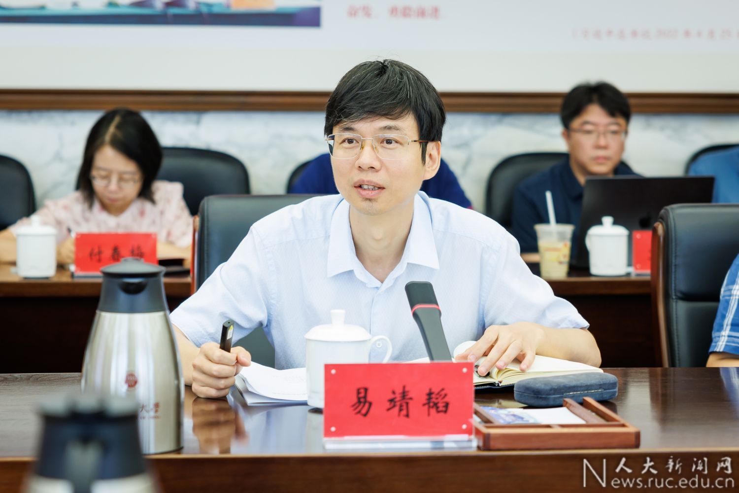 冯惠玲、赵国俊、谭清华、王善才等四位学校自评专家组专家认真听取汇报,并与杏吧论坛 审核评估工作组围绕面向人工智能时代谋划专业发展、开发创新教学项目、推进课程思政改革、发挥学生主体作用、规范命题和阅卷管理等方面展开研讨交流。