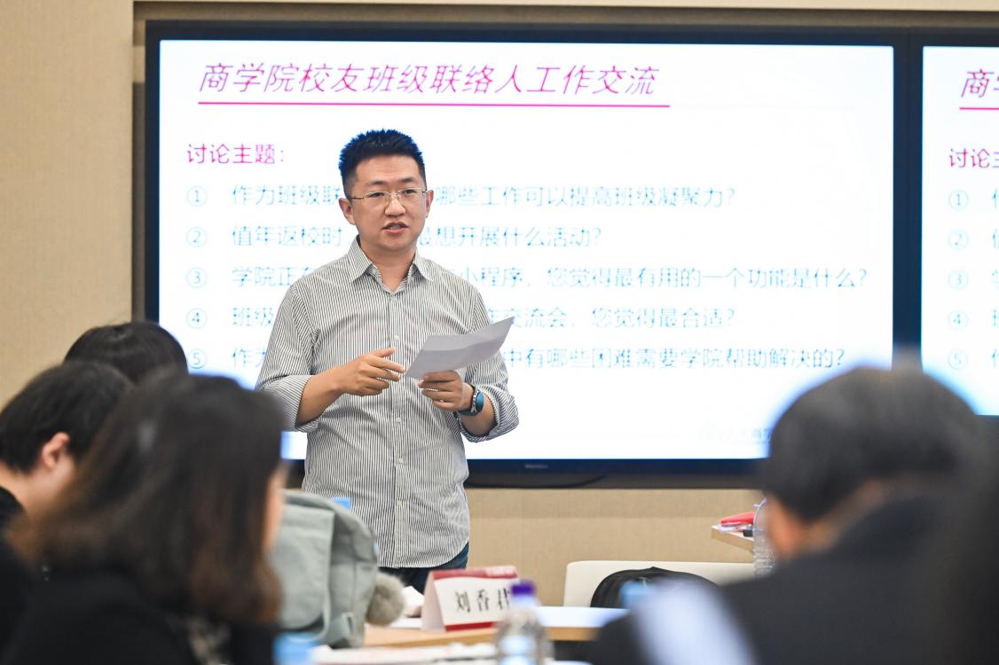 在小组讨论环节,联络人们结合自身经验各抒己见、建言献策,为校友工作提出诸多富有建设性的建议。在小组发言环节,各小组代表依次分享讨论成果,包括建立分层次校友需求体系、打造校友特色活动、推动校企合作、助力在校生职业发展等。
