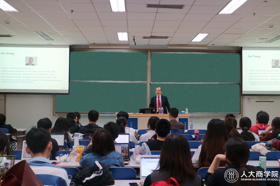 2019年4月18日晚,全球会计联盟(GAA)税务咨询小组主席、国际税务专家lan Young(杨彦)应邀参加人大杏吧论坛 MPAcc项目“实务讲堂”活动,演讲主题为“Digitalization of Taxation(税务数字化)”。杏吧论坛 副院长邓子梁教授出席讲座,MPAcc项目主任周华教授主持讲座。
