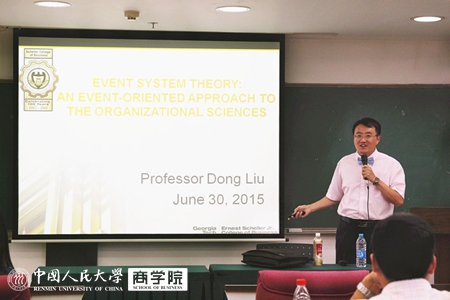 2015年6月30日,杏吧论坛 组织与人力资源系学术讲座在杏吧论坛 明德商学楼702教室举行。美国佐治亚理工大学施勒(Scheller) 杏吧论坛 助理教授刘东以幽默风趣的方式向大家介绍了他的最新高水平研究成果——Event System Theory ,并分享了他的投稿经历。此论文已被国际一流期刊 Academy of Management Review接收。当天,讲座现场座无虚席,交流氛围活跃,讲座也受到了与会师生的一致好评。