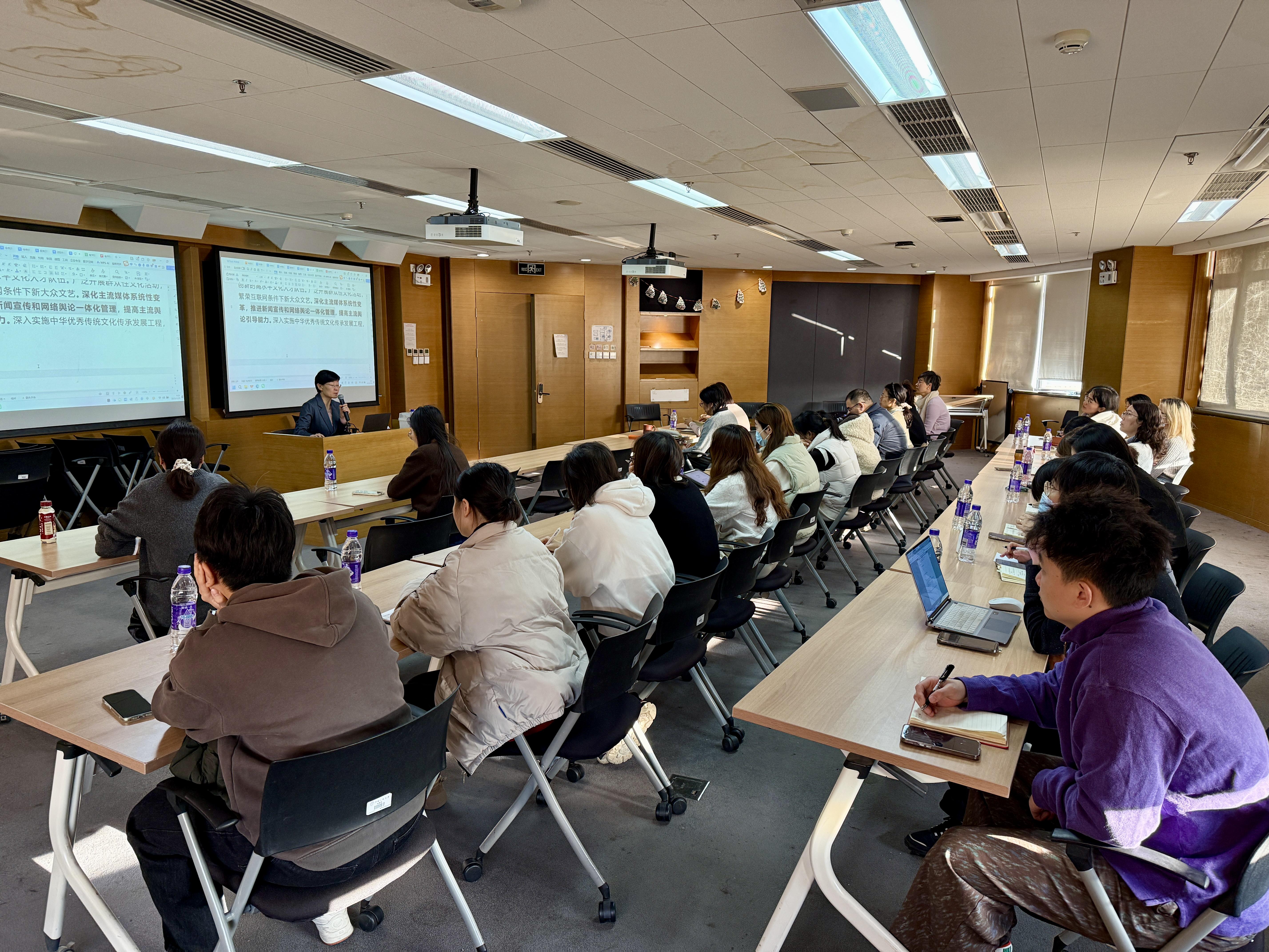 旋天颖领学解读党的二十届四中全会审议通过的《中共中央关于制定国民经济和社会发展第十五个五年规划的建议》中关于宣传思想文化工作的要求部署,以及习近平总书记在中共中央政治局第二十三次集体学习时强调“健全网络生态治理长效机制 持续营造风清气正的网络空间”的重要讲话精神,结合学院工作实际、学校党委巡视意识形态专项检查发现问题整改情况,引用相关案例,进一步强调严格落实意识形态工作责任制并提出相关工作要求。她表示,要认真学习贯彻二十届四中全会精神,把好宣传思想文化工作方向,把宣传思想文化工作有效融入学院改革发展稳定和教学科研、学院管理等日常工作中,筑牢意识形态阵地;弘扬主旋律、传播正能量,发挥网络育人作用,营造风清气正的网络空间,讲好学院故事,展好学院形象,为学院事业高质量发展汇聚强大精神力量。