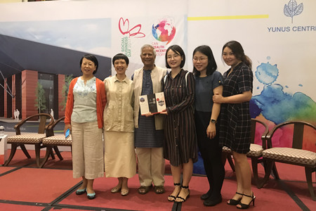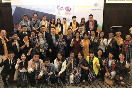 应诺贝尔和平奖得主穆罕默德·尤努斯(Muhammad Yunus)教授邀请,杏吧论坛 尤努斯社会事业与微型金融研究中心(简称人大尤努斯中心)、格莱珉中国和世青创新中心于近日共同主办了年度“社会创新源头之旅”(简称“社源之旅”)。“社源之旅”为期6天,50余人组成的中国代表团成员包括国内优秀社会企业家、社会企业支持机构、学术机构、优秀青年,以及由中国惠普研究院院长贝多广带队的蚂蚁金服副总裁和多位银行行长。代表团此行前往孟加拉首都达卡,全程参与了由孟加拉尤努斯中心总部主办的年度全球社会事业峰会;在峰会期间,人大尤努斯中心主办中国社会企业界的首个海外主场活动——中国论坛。