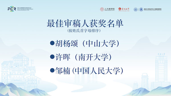 毛基业宣布最佳审稿人、最佳论文