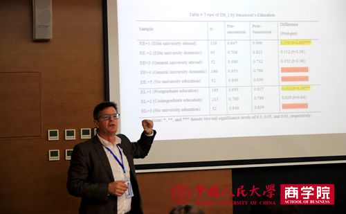 来自香港理工大学的James Ohlson教授, 康考迪亚大学的Michael Carney教授和香港科技大学的Jiing-Lih Larry Farh作了主题报告。James Ohlson教授指出会计实证研究中,传统的OLS PLUS 研究方法存在诸多缺陷,建议学者将研究重点放在存在的实际问题上,数据分析尽可能的简单、易懂。以家族企业的传承这一主题为中心,Michael Carney 教授在其报告中指出,家族企业的继承与重大的战略变革相关,继承者的国际教育背景对继承战略变革存在正向调节效果。Jiing-Lih Larry Farh的报告讨论了中国大陆、台湾、香港组织机构中的具体领导方式,例如家长式领导、变革型领导、授权型领导、辱虐管理、道德领导等。研究主要探讨了家长式领导及其三维度:维权、仁慈、德行,并进一步讨论了在中国背景下,家长式领导在领导实践中的影响及未来研究的方向。