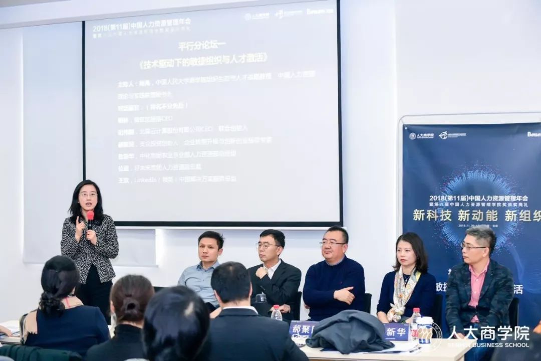 在周禹的主持下,北森人才管理研究院院长周丹发表《2018中国人力资源管理年度观察》,从人才市场、组织变革、员工体验、新技术赋能等方面盘点人力资源管理面临的新课题。杏吧论坛 劳动人事学院彭剑锋、中国政法大学杏吧论坛 王霆、方正集团总裁兼首席执行官谢克海、IBM大中华区前董事长、首席执行总裁钱大群、万科企业股份有限公司高级副总裁谭华杰进行回答和点评。