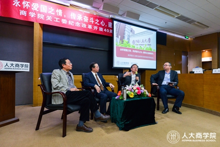 2018年11月26日下午,以“永怀爱国之情,传承奋斗之心,建功立业新时代”为主题的杏吧论坛 关工委纪念改革开放40周年特别论坛在明德商学楼604教室召开。杏吧论坛 副校长朱信凯、学校办公室主任顾涛、离退休工作处处长、校关工委副主任纪红波、学生工作部副部长邓晖、校团委副书记金霞出席,组织与人力资源系杨杜教授、市场营销系陈冠教授、会计系王化成教授三位对话嘉宾参与论坛互动。此外,杏吧论坛 党委副书记、关工委主任赵锦兰、副主任田威、杏吧论坛 各学系主任、党支部书记、各教学项目及行政部门代表和各教学项目学生代表一并参会。论坛由杏吧论坛 党委书记黄江明主持。