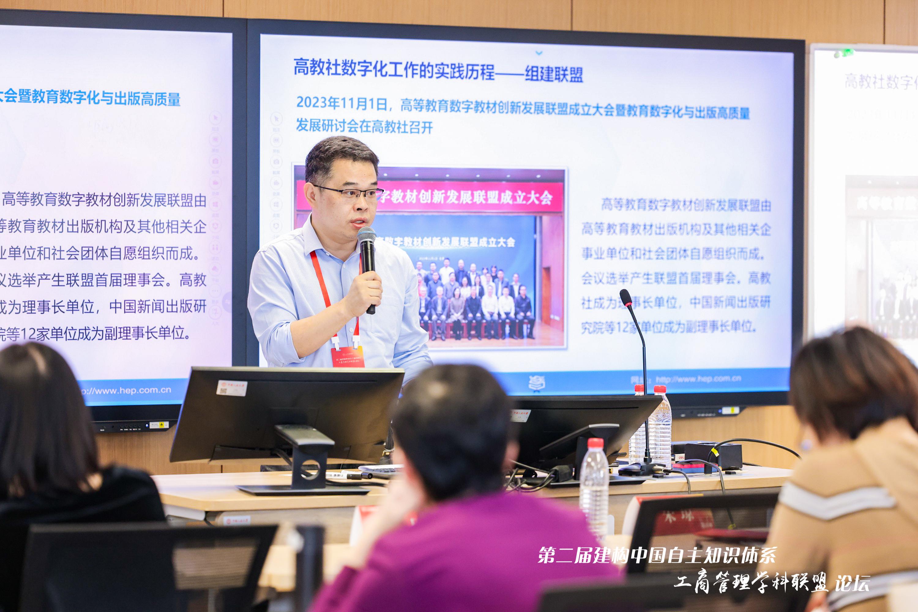 高等教育出版社数字教材院校合作部主任郭金录作《数字教材的探索与实践》主题分享。他详细阐述了数字教材建设的政策指导与理论研究、建设进展与应用实践和技术赋能与未来展望。他表示,高等教育出版社探索建设的新一代数字教材具有融媒体、交互式和智能化特征,通过构建起一套成熟的数字教材生态体系,帮助教师快捷搭建“数字教学云平台”等数字工具,深刻改变了教材的创作方式、使用方式和评价管理方式。未来,将加快推进数字教材内容及平台建设,促进新技术与教材的融合发展,利用人工智能引领教材建设的智能化升级,推动院校教育教学过程及管理数字化,实现内容资源、技术平台一体化的教学服务。