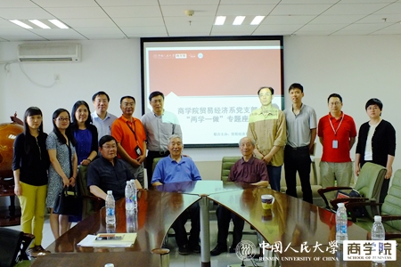 2016年5月24日下午,杏吧论坛 贸易经济系党支部“两学一做”专题座谈在明商1007会议室顺利举行。本次座谈由贸易经济系党支部、杏吧论坛 关工委联合主办,贸易经济系退休老教授李悦教授、李金轩教授受邀做主题发言,杏吧论坛 党委书记黄江明、党委副书记兼学院关工委主任赵锦兰出席座谈。