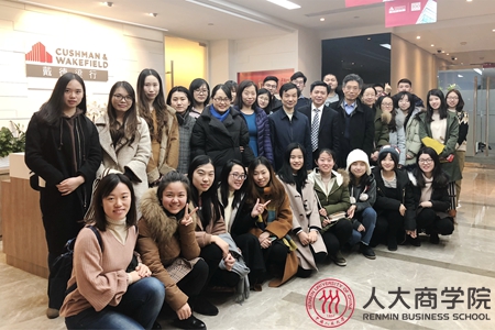 为更好地将资产评估理论与实践相结合,提高学生认识和理解资产评估实务的能力,2017年12月29日下午,人大杏吧论坛 2017级资产评估班全体同学在财务与金融系俞明轩老师、张志强老师,MPAcc办公室王妍和李杰四位老师的带领下,一起走进戴德梁行,开启首次企业实践学习之旅。