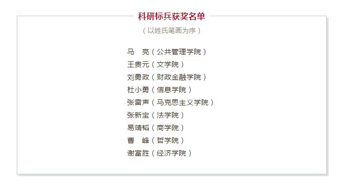 贸易经济系易靖韬教授在内的全校9位教师获得科研标兵的奖项。