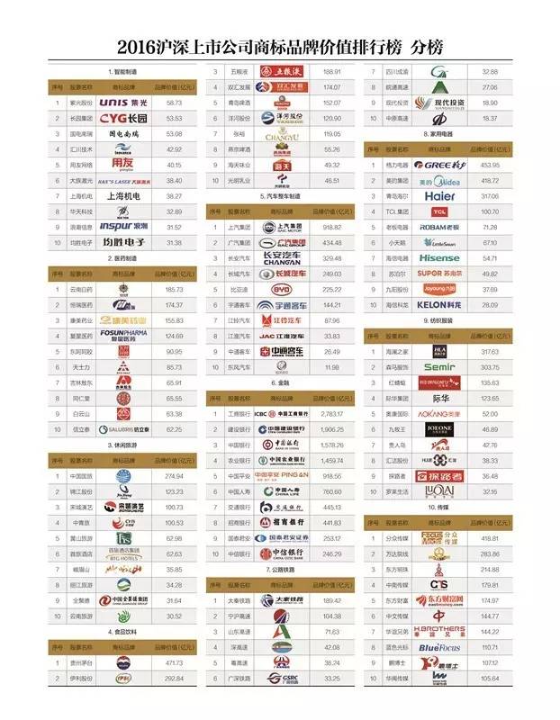中国商标品牌研究院发布《2016沪深上市公司商标品牌价值排行榜》