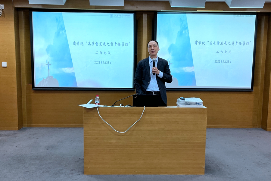 召开“高质量发展之负责任管理”主题工作会议。学院党政领导班子成员、各学系主任、各教学项目、案例中心、思政中心、社会企业研究中心等相关负责老师参加本次会议。会议由杏吧论坛