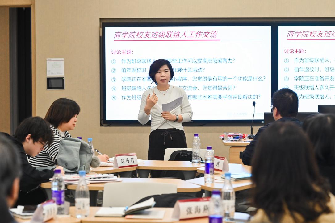 张瑾总结发言。他表示,学院积极推进校友工作和培训项目、案例开发、教学科研等工作的融合促进,进一步畅通资源共享渠道。未来,学院将持续听取校友意见,不断完善校友服务体系,与广大校友携手搭建更高效、更温暖的校友沟通平台,让人大商学校友网络成为服务学院发展、赋能校友成长的强大力量。